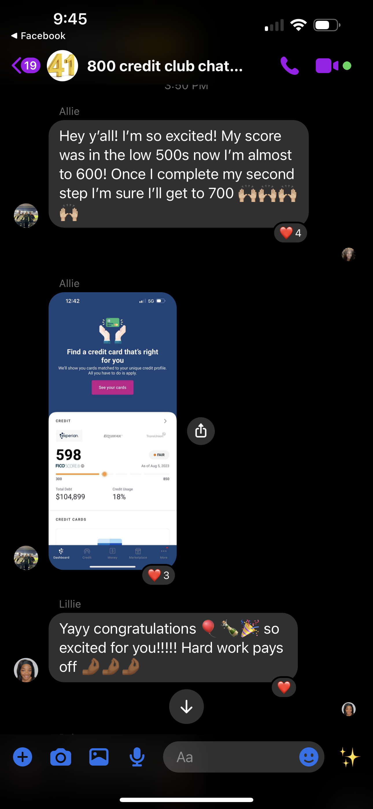 Facebook Group: Our 6 figure group community of other educators and people who have repaired their credit.